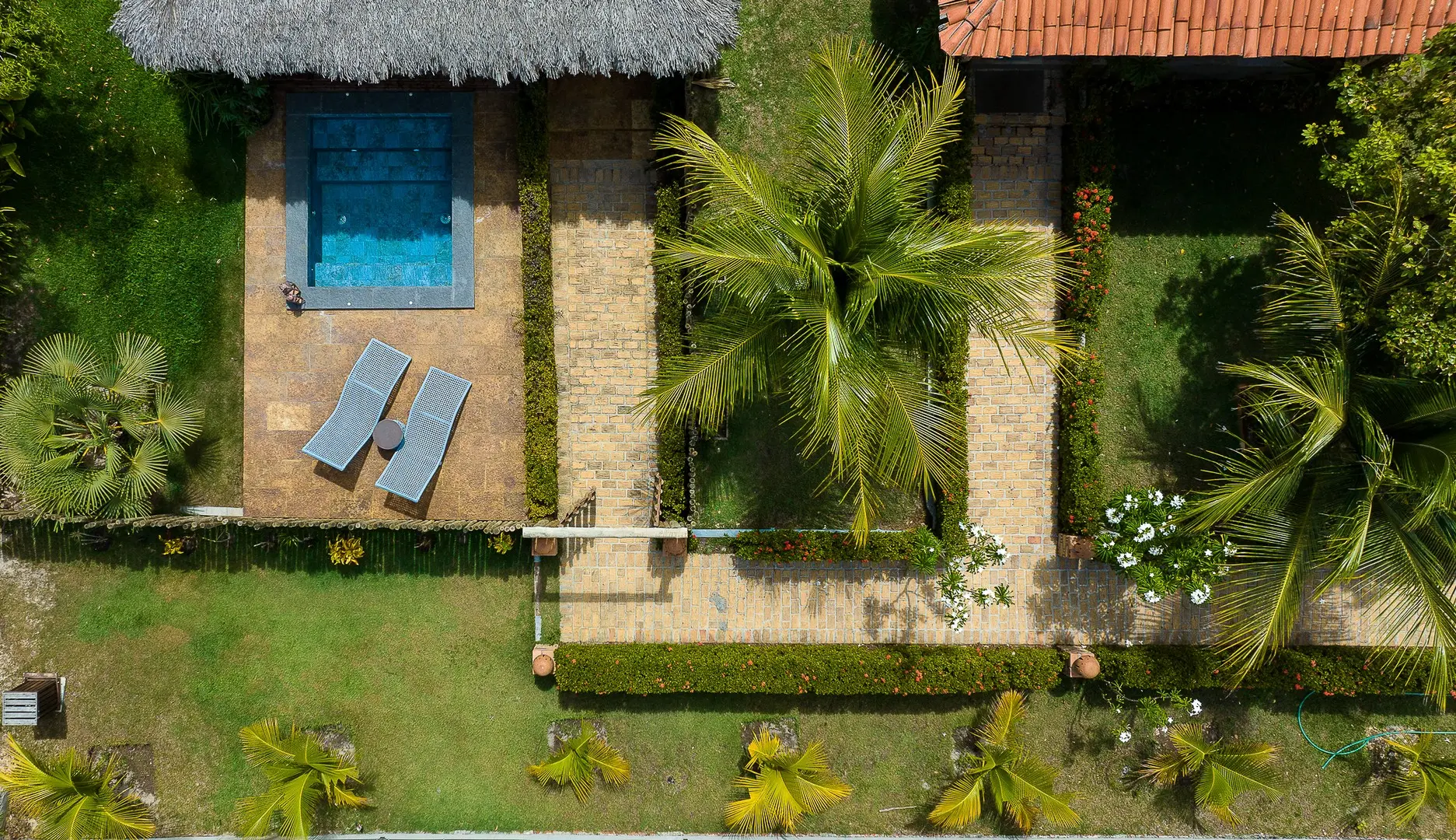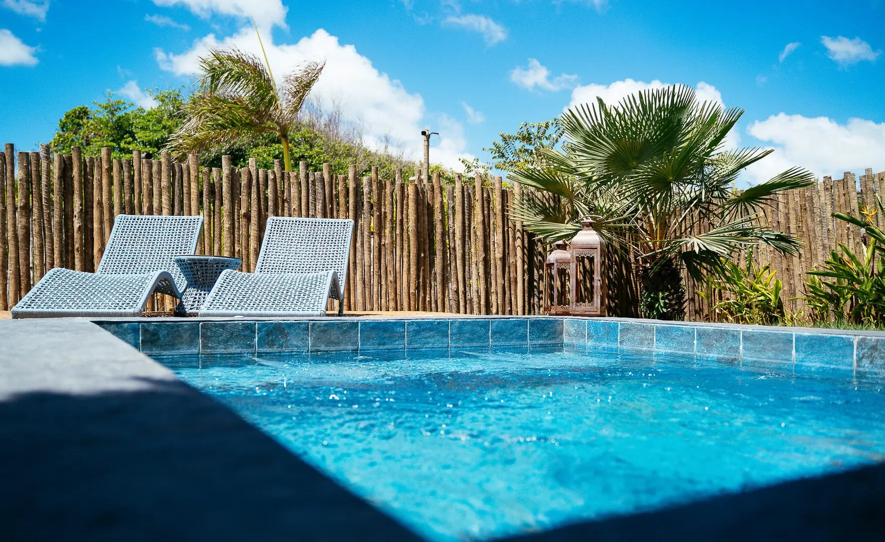 Destaca la piscina privada con hidromasaje, que proporciona momentos de serenidad.
